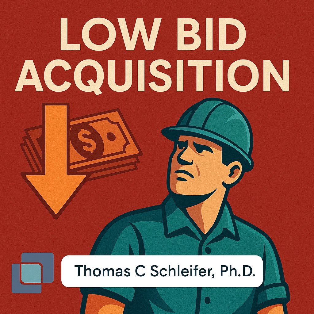 Low bid acquisition has been standard operating procedure in the construction industry, and just about all small start-up contractors are forced to participate or forgo getting any work at all. However, low bid acquisition destroys any reasonable chance of making a profit. Many contractors that I have talked with over the years say that they expect to take a few losing jobs just to keep busy, cover the overhead, and keep them in line for the profitable work when it comes along. In other words, the common thinking in our industry is it’s ok to lose money now and then.