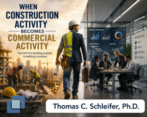 This week we will be discussing the distinction between construction activity and commercial activity. Many contractors start their careers working with the tools and because of the unique nature of the construction financial transaction (contracting for one new job after another rather than a continuous flow of ongoing financial transactions) quickly grow into business owners and managers before they realize it. Therefore, they rarely see business management as a science distinct from construction management.